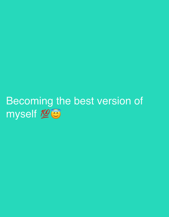Against a turquoise background, the text "Becoming the best version of myself" is displayed in white