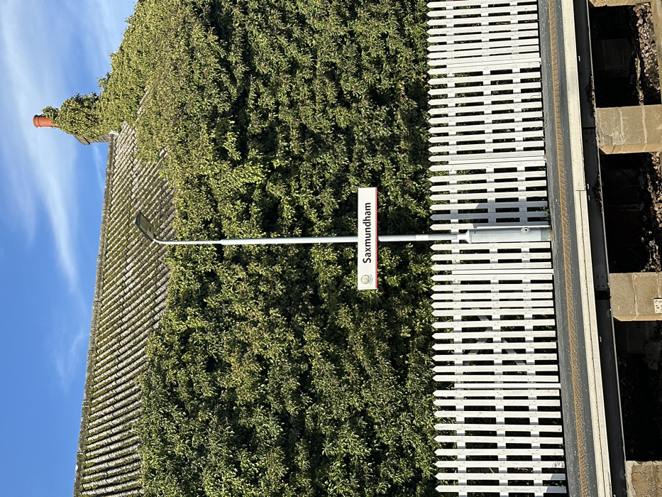 - "This image depicts a railway platform scene at Saxmundham, a town located in East Suffolk, United Kingdom" by FM-o3SHn1, licensed under CC BY 4.0