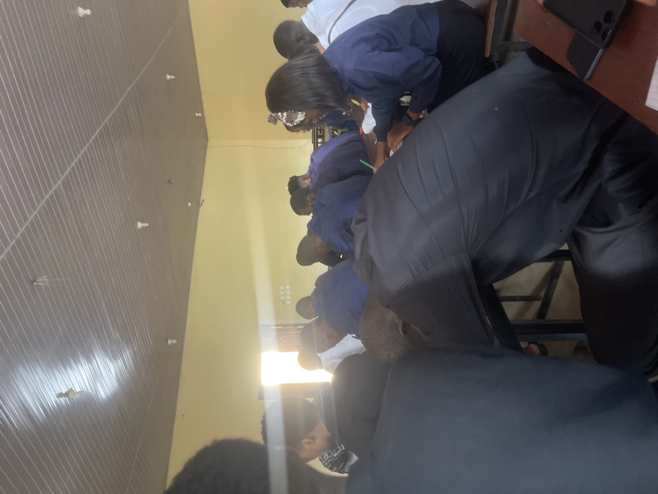 The image captures an indoor scene within a classroom or lecture hall in Uturu, Nigeria