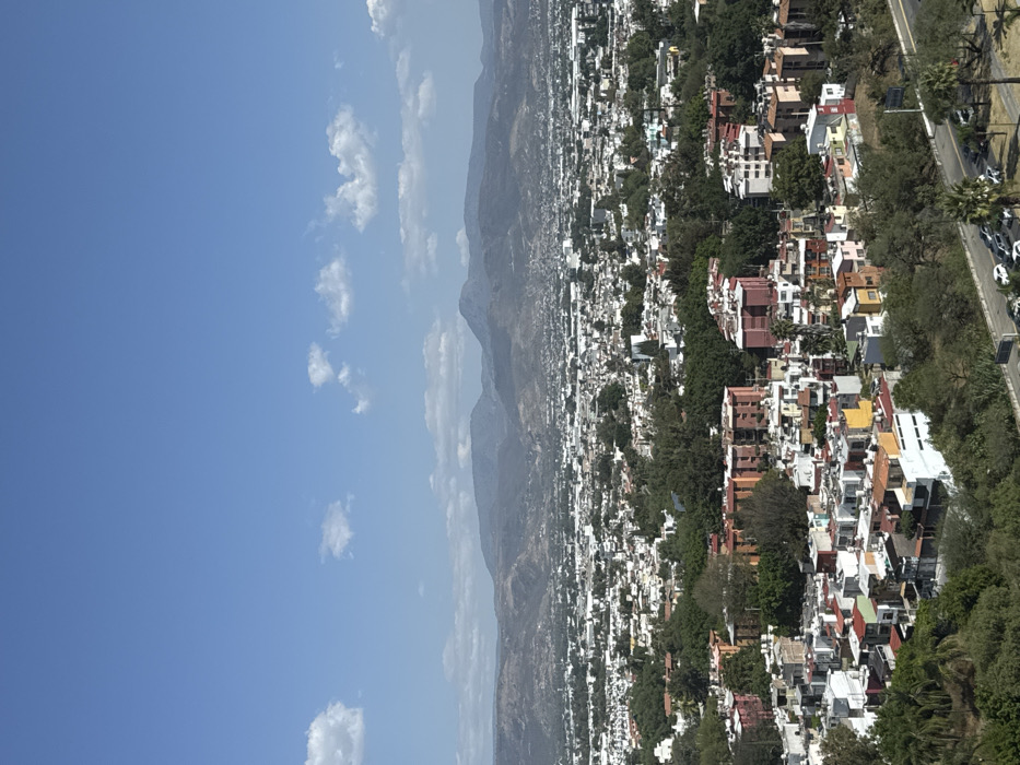 - "A high-angle view reveals a cityscape nestled against a hazy mountain range under a clear blue sky with scattered clouds" by FM-3UnWB3, licensed under CC BY 4.0
