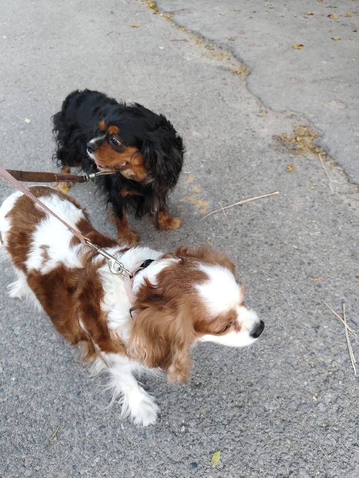 - "This image depicts two leashed Cavalier King Charles Spaniel dogs on a paved surface in Blue Area, Pakistan" by FM-uPtwu2, licensed under CC BY 4.0