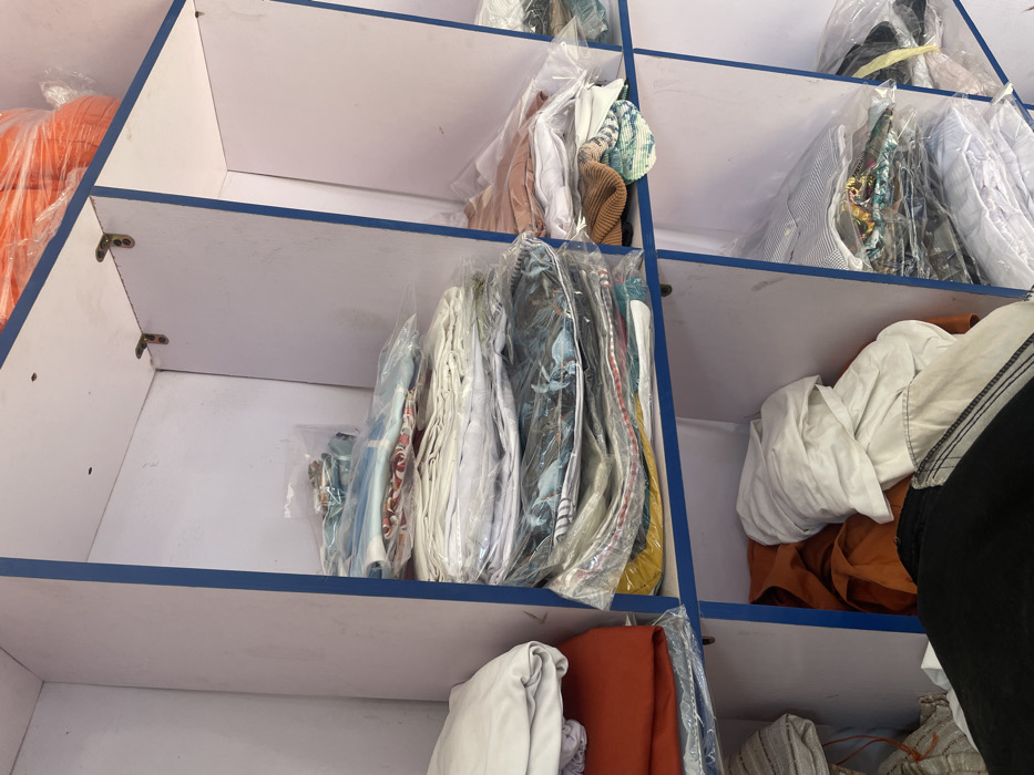 - "The image displays an interior scene within a commercial or storage facility in Ikota, Nigeria, characterized by a multi-compartment shelving unit filled with folded clothing" by FM-GyTKy2, licensed under CC BY 4.0