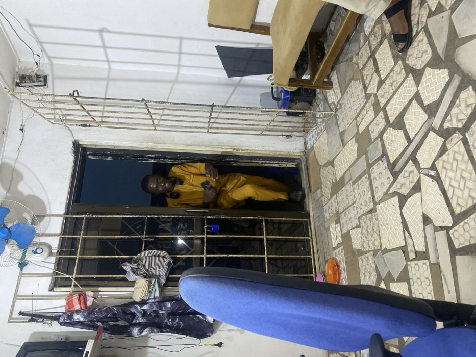 An interior scene in Jos, Nigeria, depicts a man standing within an open doorway, smiling directly at the camera
