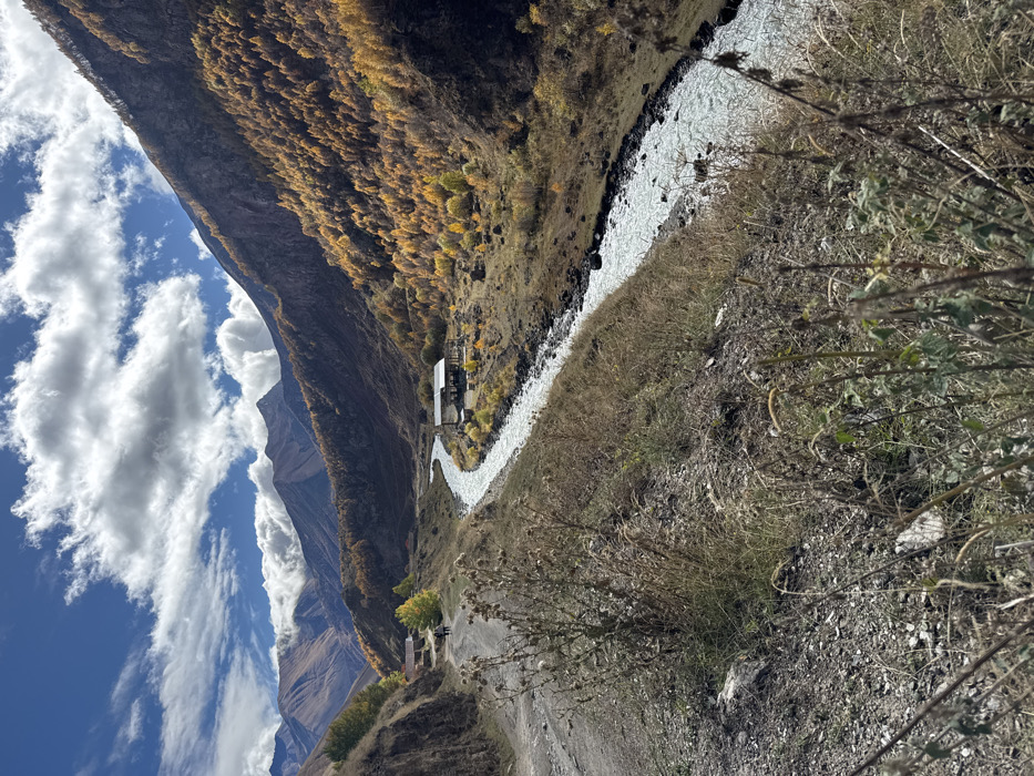 - "The image displays a mountain valley scene located in the city of Kvemo Okrokana, Georgia, under a blue sky with scattered white cumulus clouds" by FM-Sep6K2, licensed under CC BY 4.0