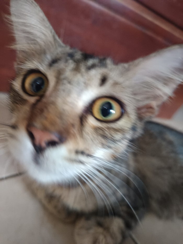 - "A close-up, high-angle shot captures a tabby cat's head and upper body" by FM-PvkdH3, licensed under CC BY 4.0