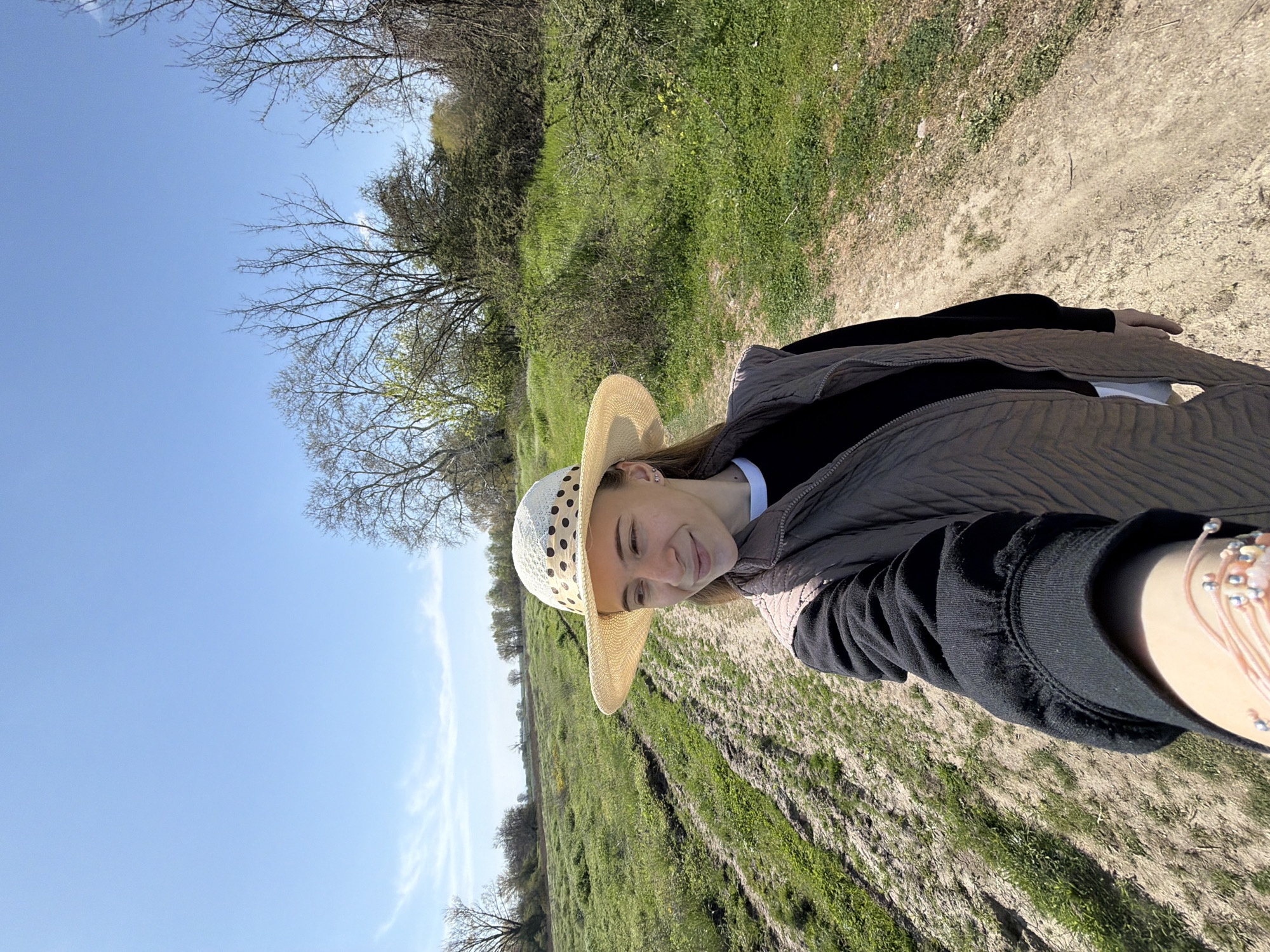 young woman taking a selfie in a rural setting, likely near Milevo, Bulgaria