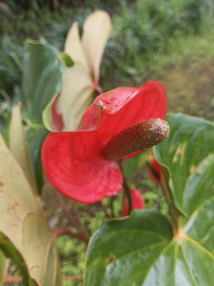 - "A close-up, high-angle view depicts a single red anthurium (Anthurium andreanum) flower" by FM-paRGh1, licensed under CC BY 4.0