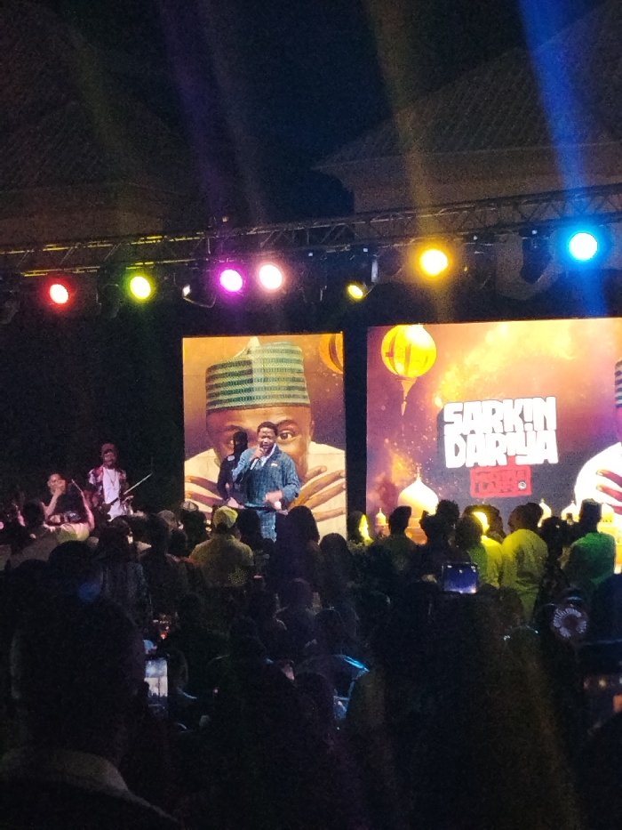 This image depicts an indoor performance event in Fagge D2, Nigeria