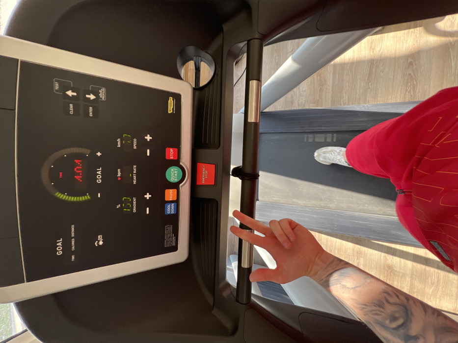 - "An individual is depicted from a first-person perspective, standing on an active Technogym treadmill within a fitness center in Sofia, Bulgaria" by FM-V46qG3, licensed under CC BY 4.0