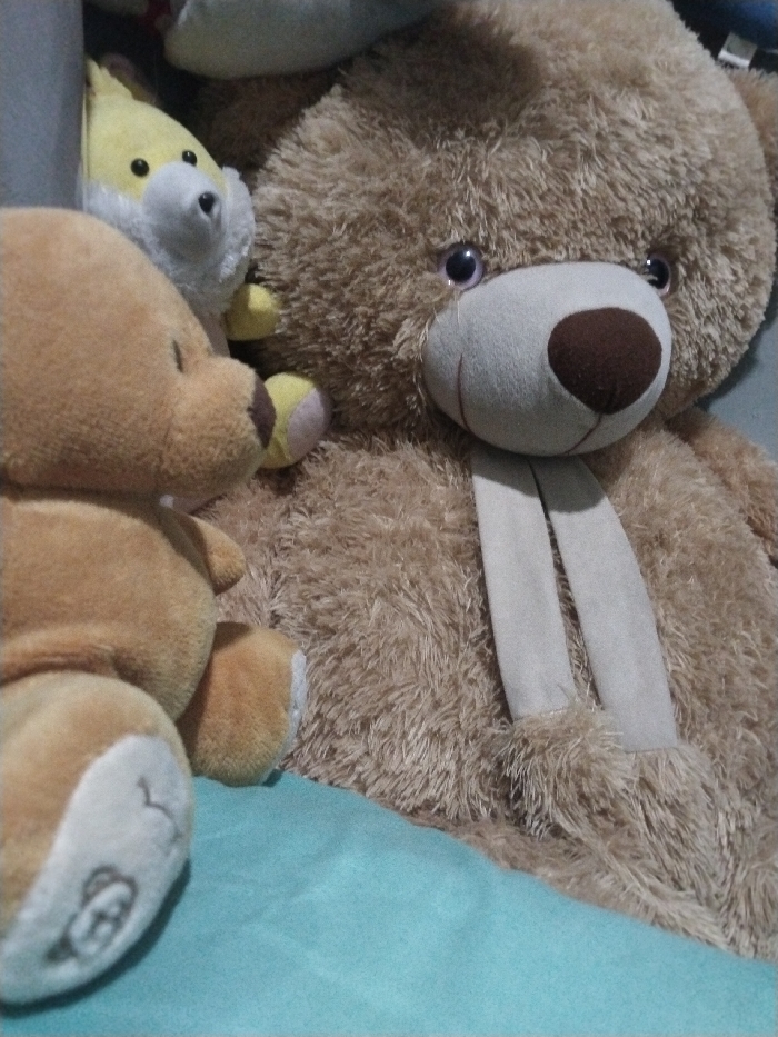 - "The scene depicts an arrangement of three stuffed animals on a teal fabric surface, located in Kutaglumpang, Indonesia" by FM-vhmNj2, licensed under CC BY 4.0