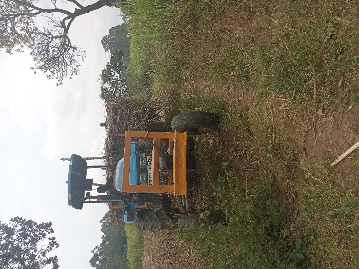 In the City of Chevaywa ward, Kenya, a blue tractor with the license plate 'TCD 489R' is observed on a dirt path