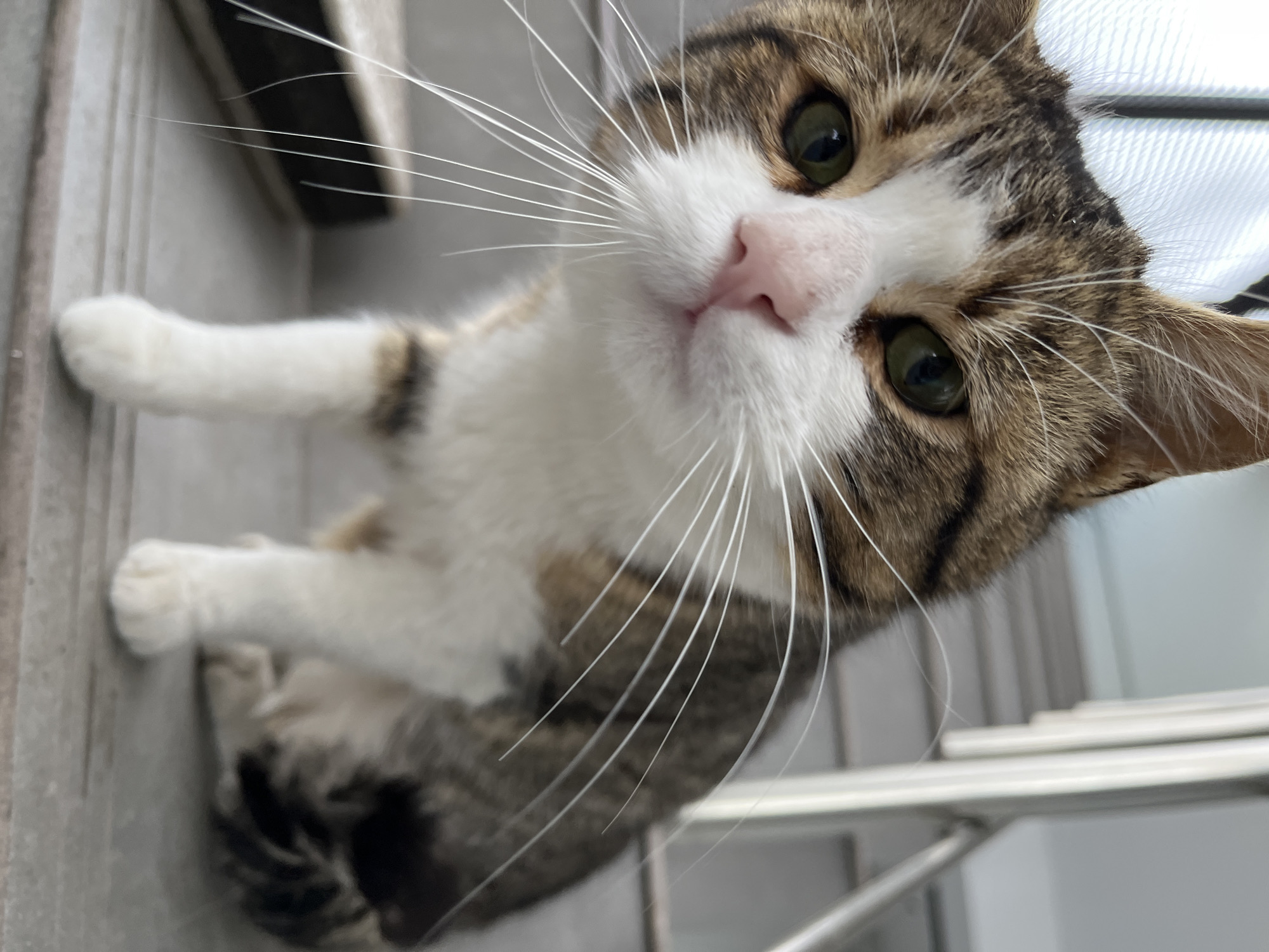 - "A medium shot focuses on a cat, its gaze directed upward towards the camera" by FM-n8HSC3, licensed under CC BY 4.0