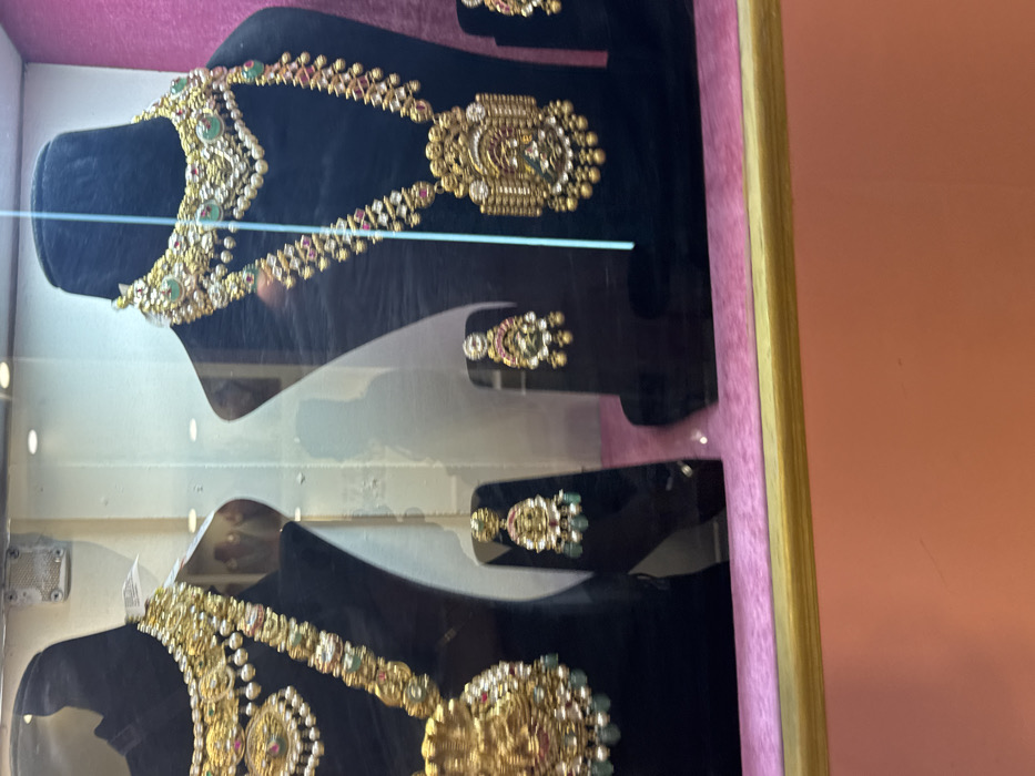 The image displays a retail jewelry showcase in Jaipur Municipal Corporation, India