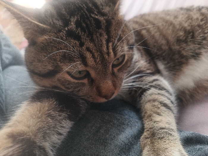 - "This image depicts a domestic tabby cat resting, located in the city of Targovishte, Bulgaria" by FM-JPM2z2, licensed under CC BY 4.0