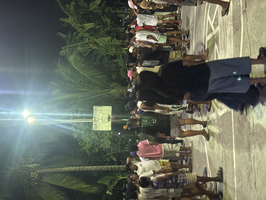 This image depicts a nighttime scene on an outdoor basketball court in Koronadal, Philippines