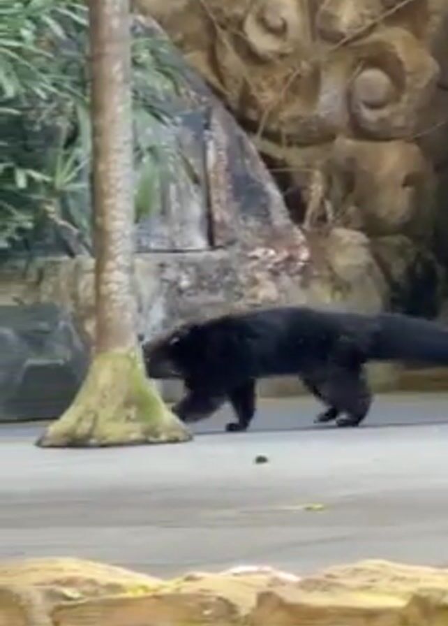 - "A medium shot shows a dark gray Binturong walking from left to right" by FM-PcEqo1, licensed under CC BY 4.0