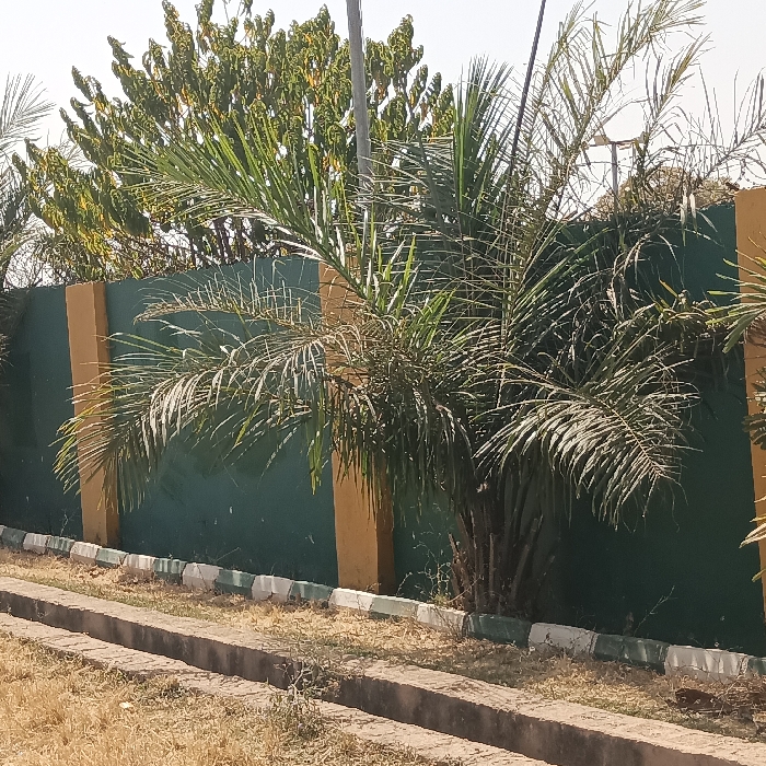 The image displays an outdoor daytime scene in Barakin Sabawa, Nigeria, featuring a landscaped boundary