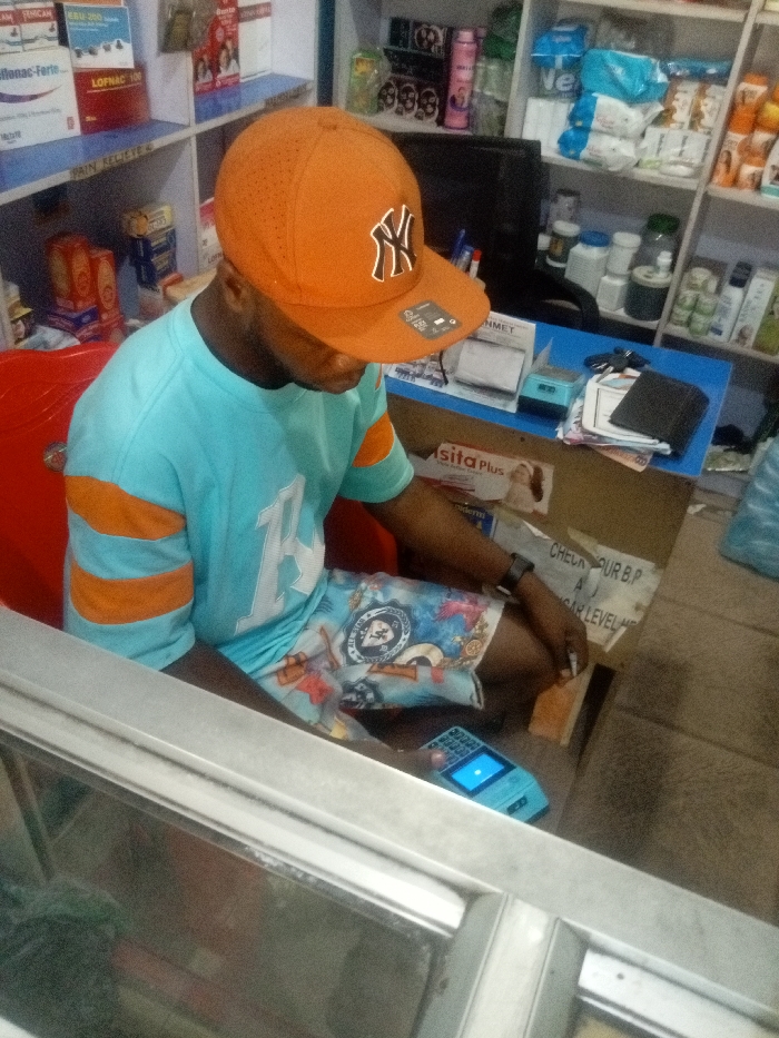 This image, captured in Nkpor, Nigeria, depicts an indoor retail environment, likely a pharmacy or general store