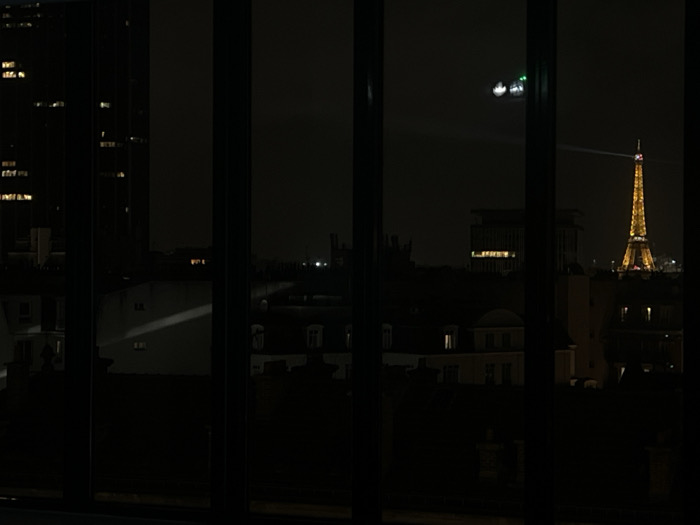 - "The image depicts a nighttime cityscape of Paris, France, viewed through a window with dark vertical frames" by FM-jW2h42, licensed under CC BY 4.0
