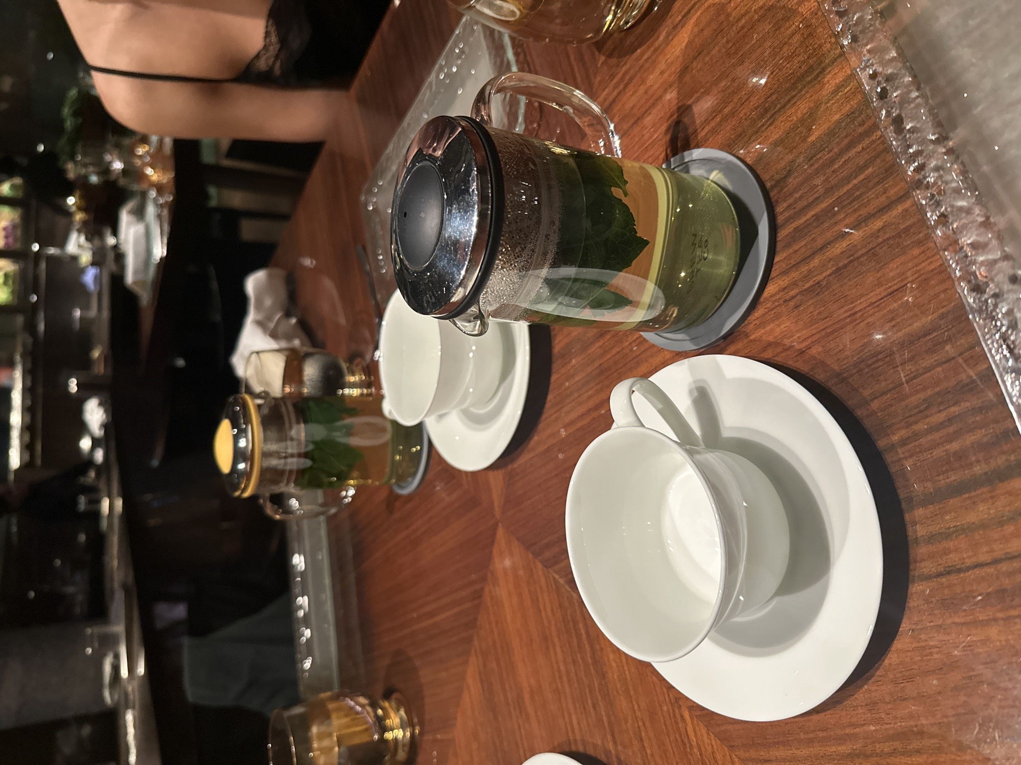 - "A close-up, indoor shot features a line of teacups and teapots on a dark, wooden table with a glossy finish" by FM-o3SHn1, licensed under CC BY 4.0