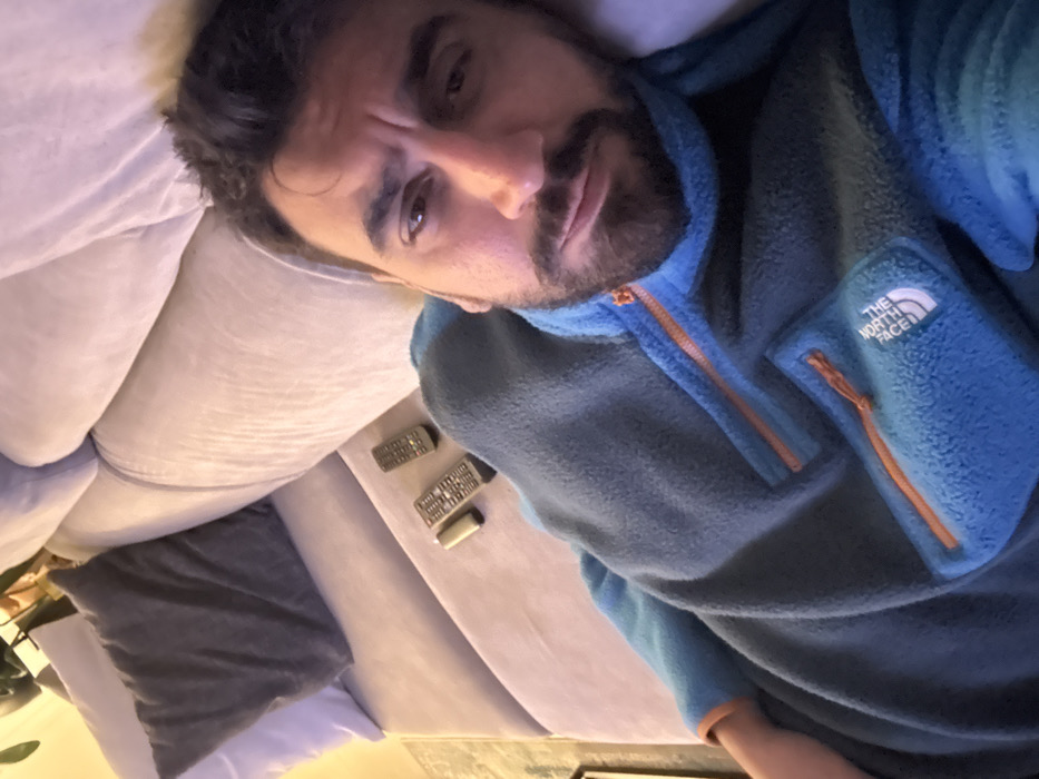 - "The scene depicts an adult male reclining indoors on a light-colored upholstered sofa in Limassol, Cyprus" by FM-2cGlw1, licensed under CC BY 4.0