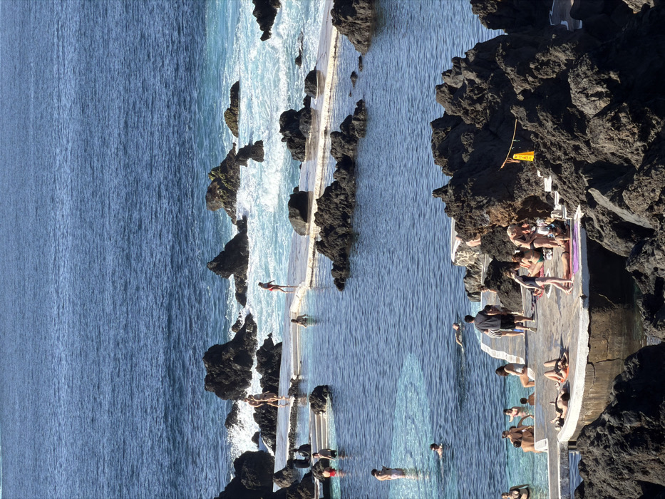 - "A coastal scene displays several people enjoying a natural pool surrounded by dark, rocky formations" by FM-PcEqo1, licensed under CC BY 4.0