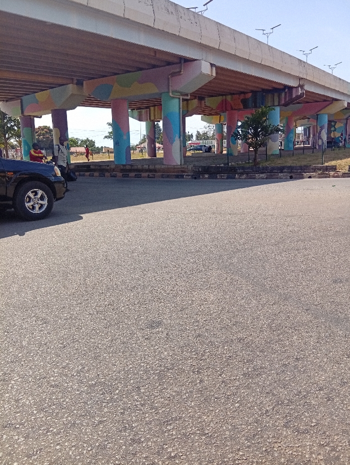 - "The image depicts the Solomon Lar Flyover in Jos, Nigeria, characterized by its concrete pillars painted in irregular patterns of pink, light blue, yellow, green, and purple" by FM-dcKY72, licensed under CC BY 4.0