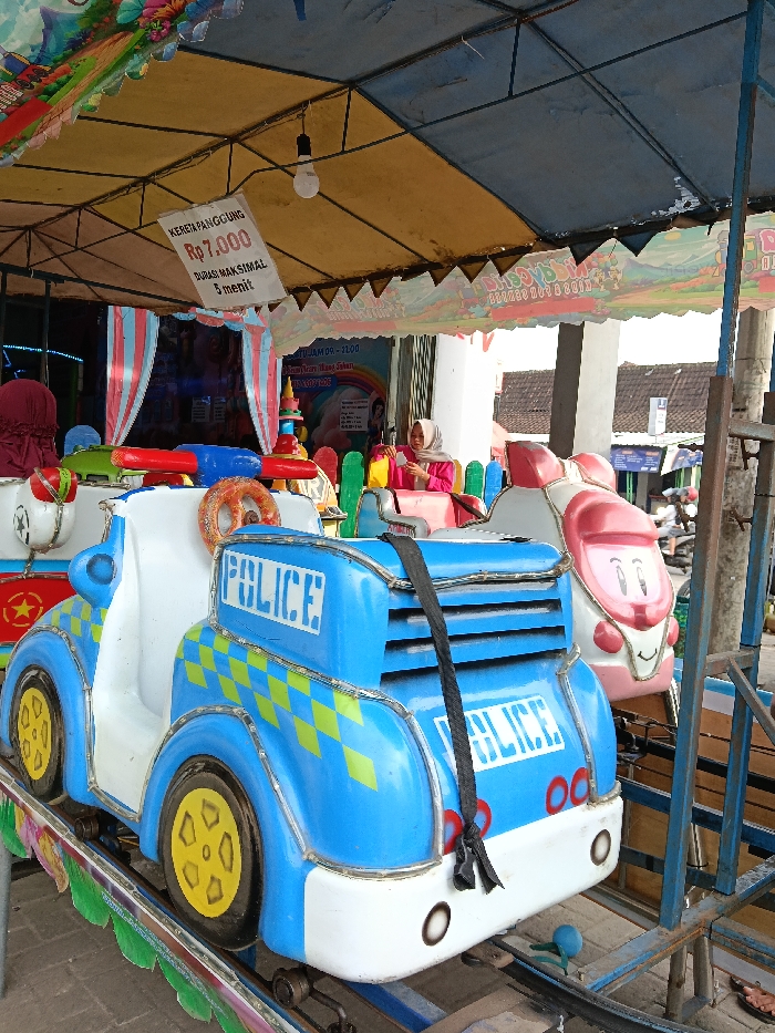 - "An outdoor scene in Sumberejo, Indonesia, depicts a children's amusement ride operating under a yellow and blue fabric canopy supported by a metal frame" by FM-rqqp93, licensed under CC BY 4.0