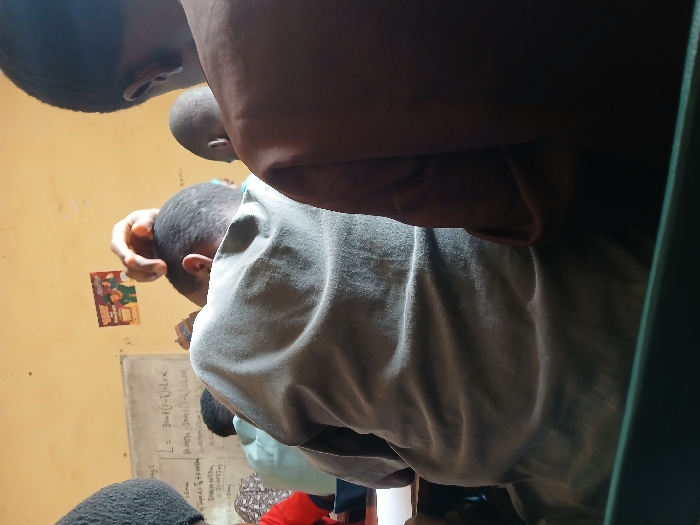 An indoor scene in Ugi Majowel, Nigeria, depicts multiple individuals seated in what appears to be a classroom