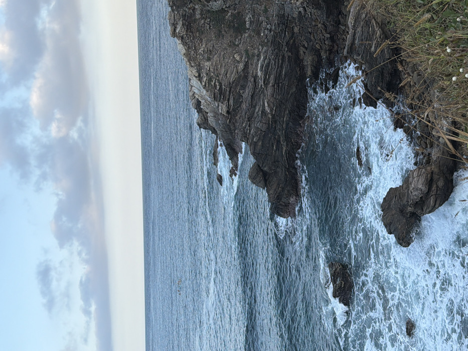 - "A cliff dominates the frame's right side, its rocky face meeting the turbulent ocean" by FM-TOA2r1, licensed under CC BY 4.0