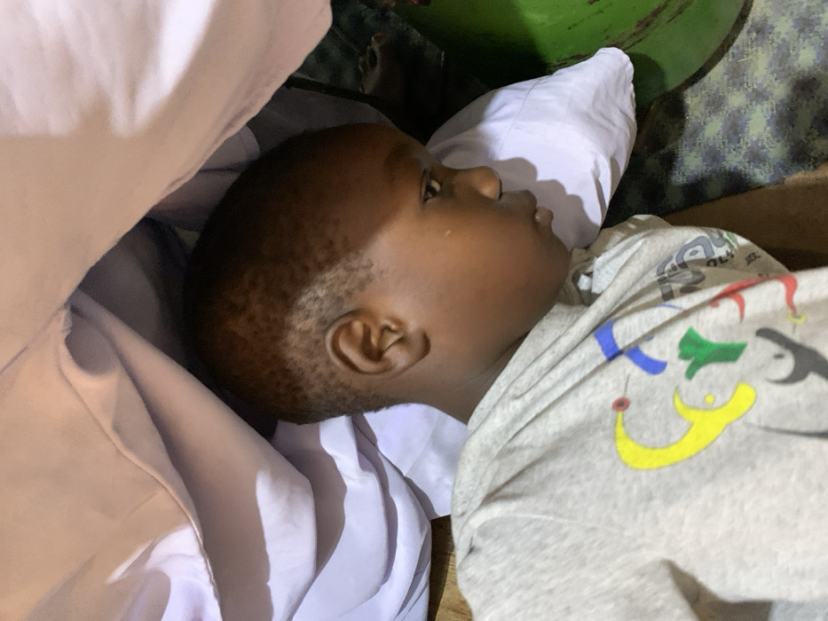 In Bukuru, Nigeria, an indoor scene displays a young, dark-skinned child lying down, viewed from an overhead perspective