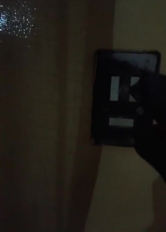 A person is turning off a light switch