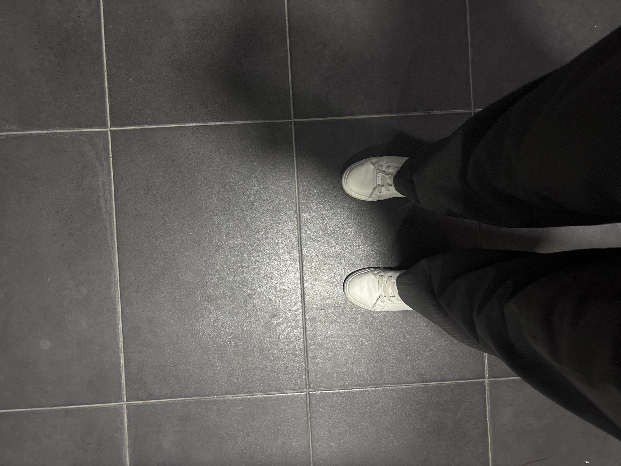 - "The image depicts a first-person, downward view of a person's lower legs and feet standing on a tiled floor in the city of Buenavista, Mexico" by FM-2EXno2, licensed under CC BY 4.0