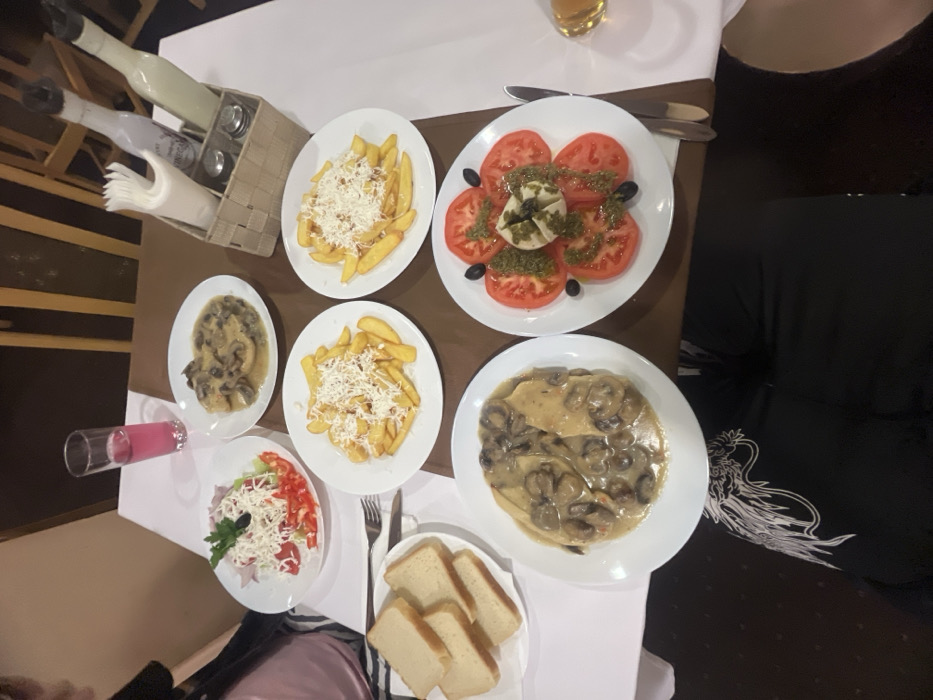This image captures a dining table scene within a restaurant located in Bansko, Bulgaria