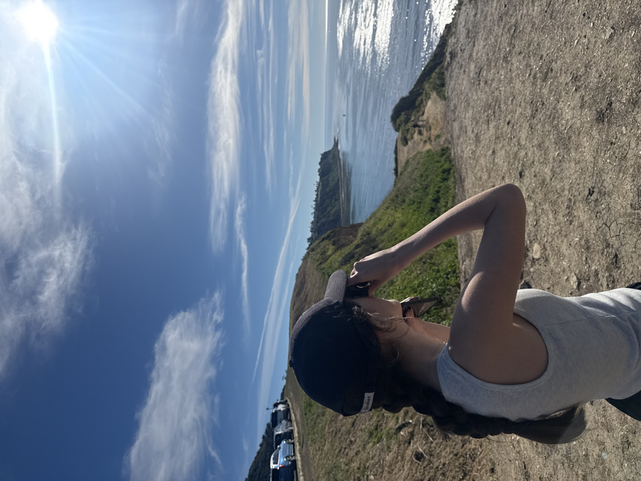 The scene captures an expansive coastal vista from a sunlit dirt bluff in Palos Verdes Estates, United States