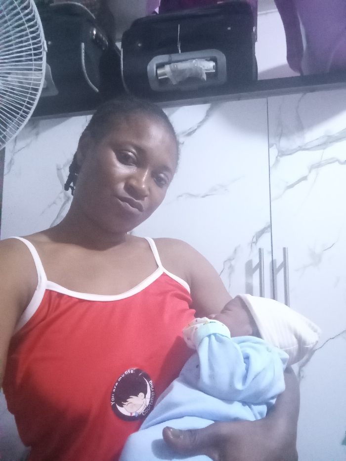 - "A woman holds a newborn infant, wearing a white hat and blue clothes, in her arms" by FM-hMl2Q2, licensed under CC BY 4.0