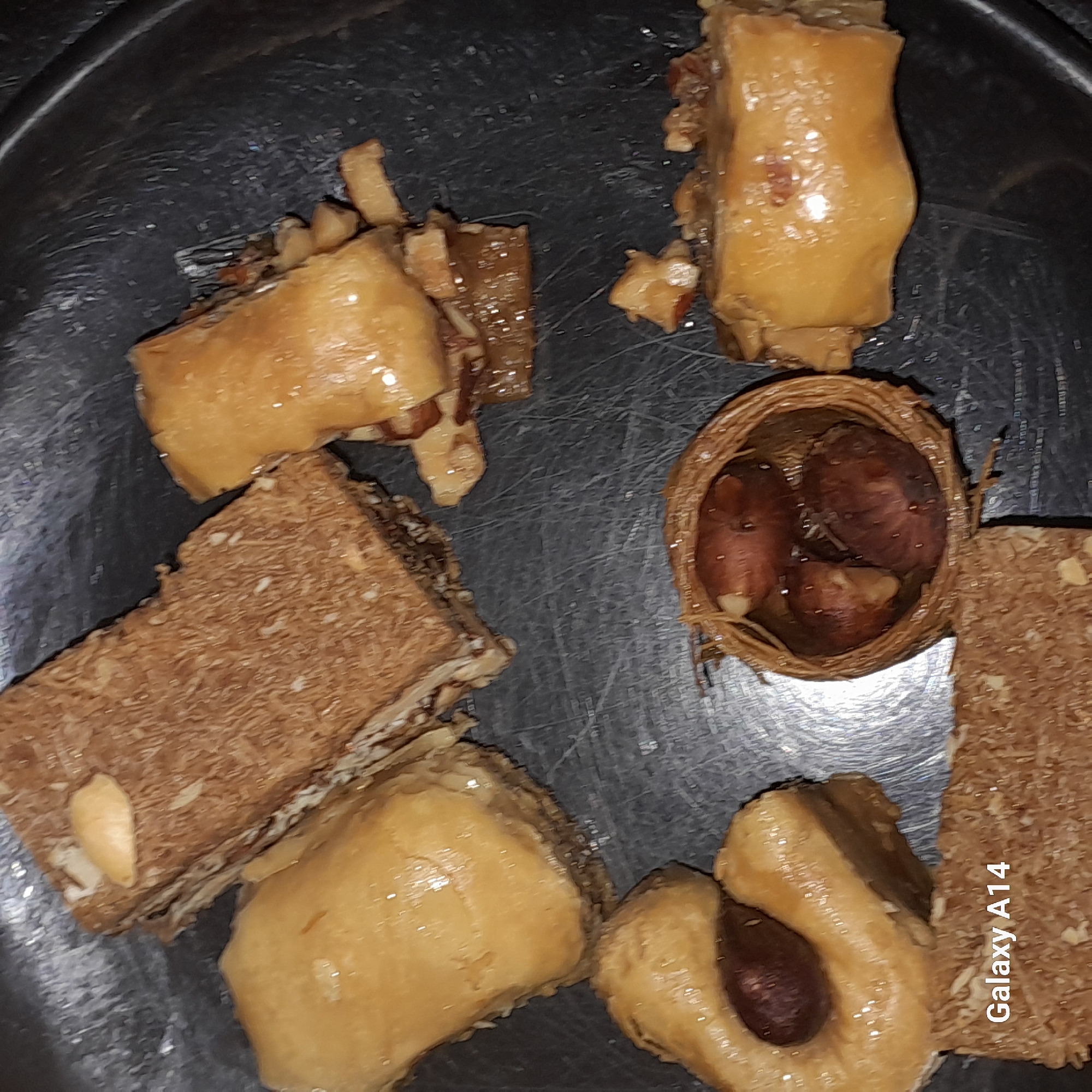 - "A dark-colored plate holds several pieces of Middle Eastern pastries" by FM-V8KrL2, licensed under CC BY 4.0