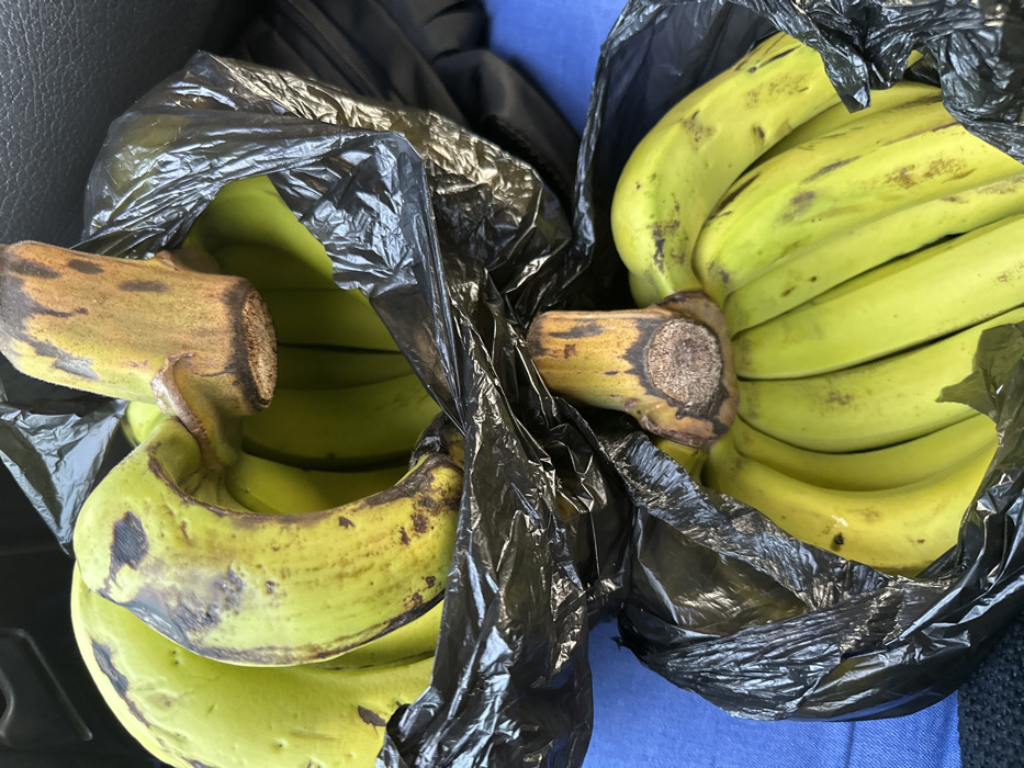 - "The scene, located in Unguwar Gaya, Nigeria, displays two distinct bunches of plantains or bananas, primarily green with yellow hues and scattered brown blemishes" by FM-w9j6l1, licensed under CC BY 4.0