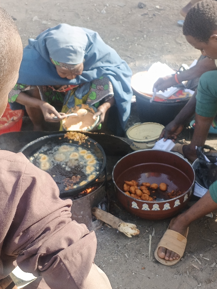 The scene depicts an outdoor food preparation area in Gobirawa, Nigeria