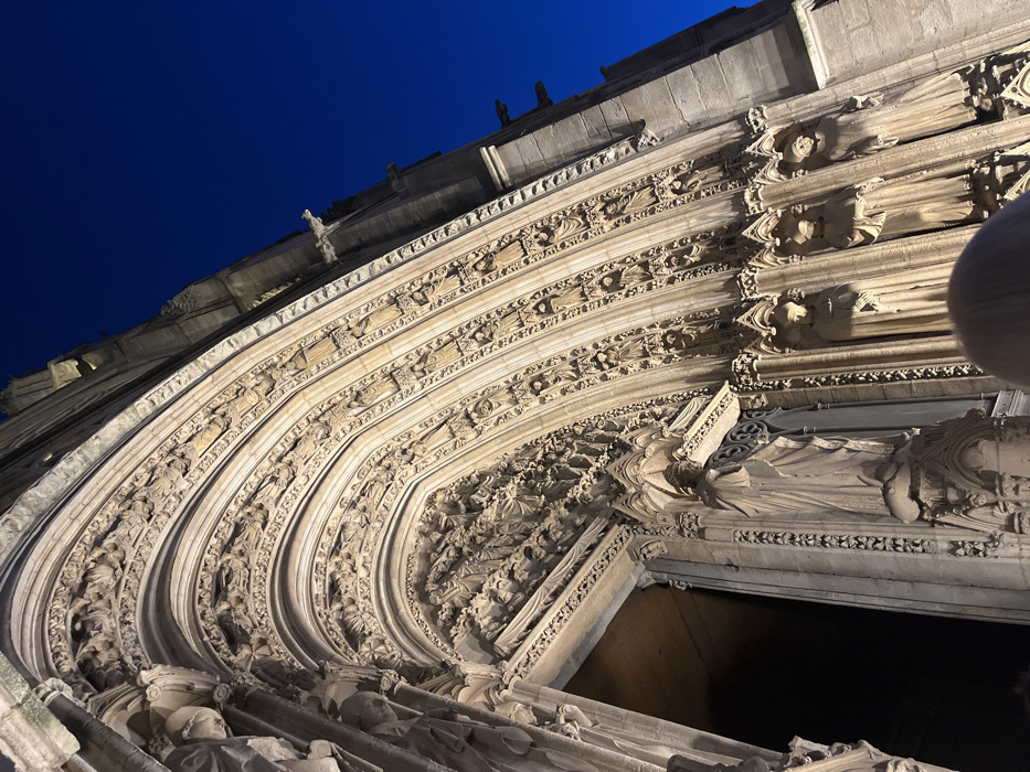 - "The image captures a low-angle view of the Royal Portal of the Cathédrale Saint-André de Bordeaux in Bordeaux, France, at night" by FM-ylPUu2, licensed under CC BY 4.0