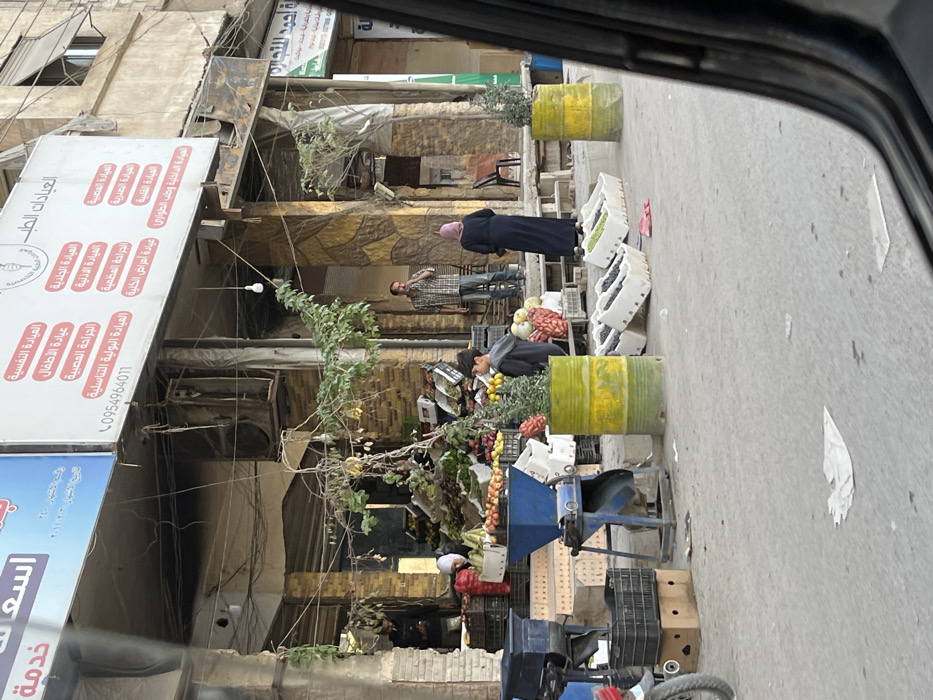 - "The image depicts an urban street scene in Mu'adammiyat ash-Sham, Syria, featuring a bustling fruit and vegetable market operating at street level beneath a multi-story building" by FM-Mi9R82, licensed under CC BY 4.0