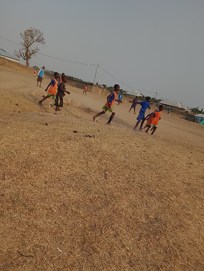 - "The image depicts an outdoor scene in Masaka, Nigeria, featuring approximately ten children engaged in a soccer game on a dry, uneven dirt field" by FM-LIDYd2, licensed under CC BY 4.0