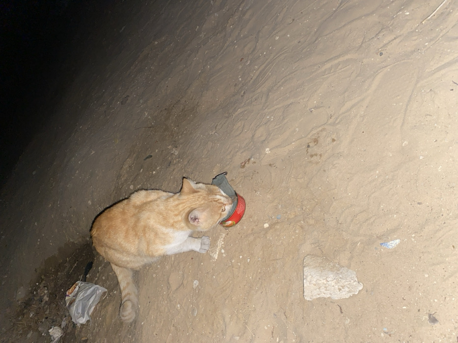 - "An orange tabby cat is observed at night on sandy ground in Khan Yunis, Palestinian Territory" by FM-zLbwE2, licensed under CC BY 4.0