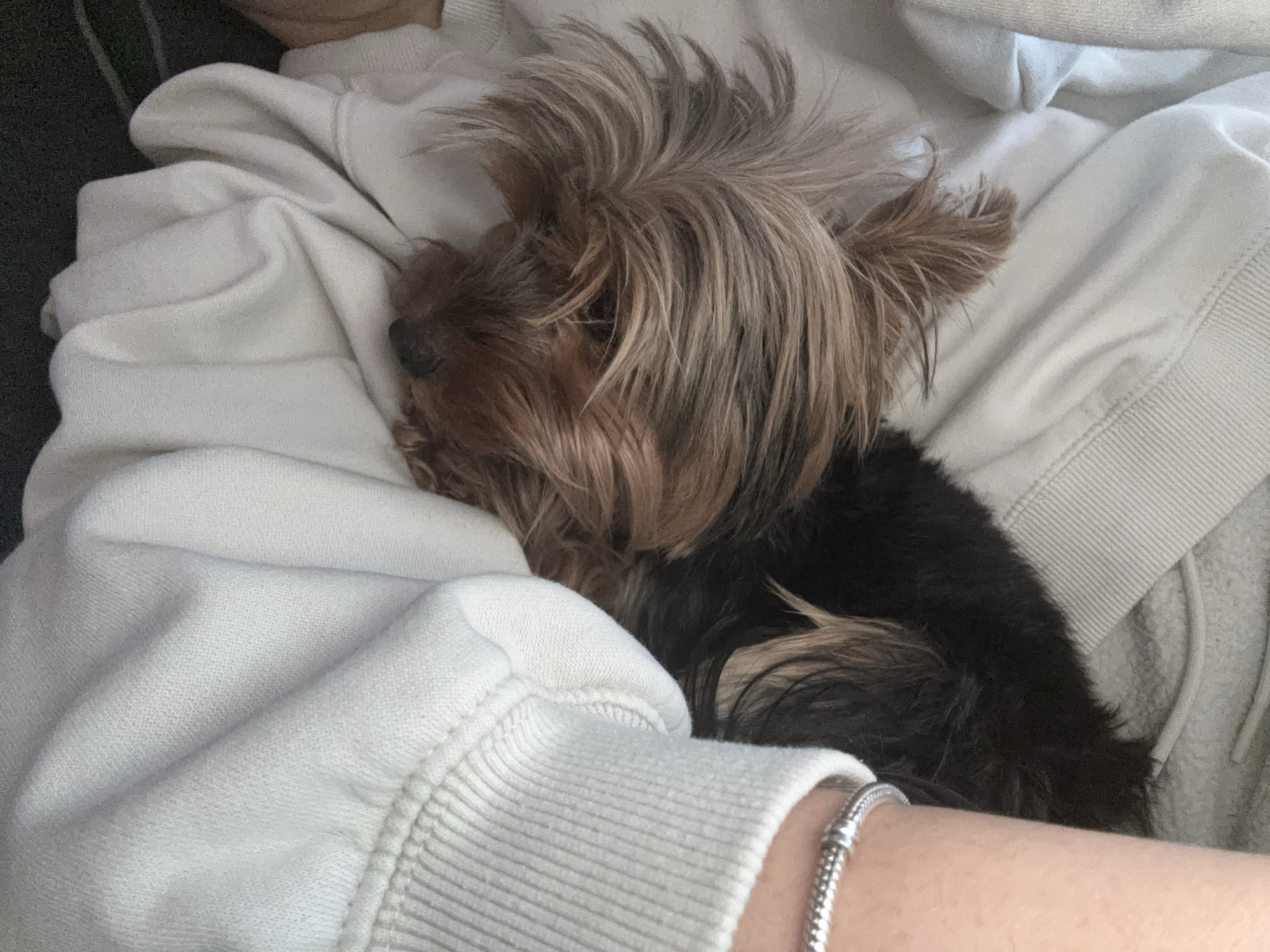 - "The scene depicts a small Yorkshire Terrier dog resting on or against a person, set in Stara Zagora, Bulgaria" by FM-6BemA3, licensed under CC BY 4.0