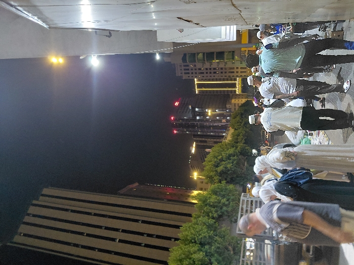 - "A nighttime street scene features a group of individuals, predominantly men, many wearing white caps or head coverings" by FM-ttalh2, licensed under CC BY 4.0