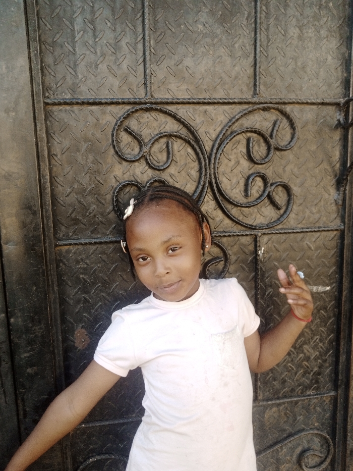 - "An image taken in Jos, Nigeria, depicts a young girl standing centered against a dark, textured metal door or gate" by FM-w9rYt2, licensed under CC BY 4.0