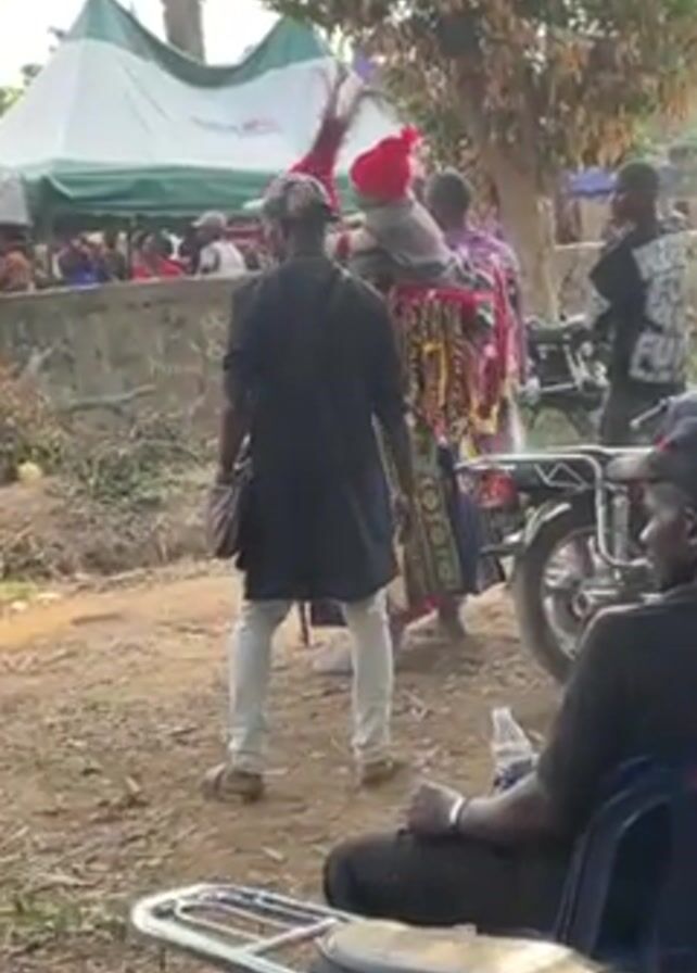 cultural performance taking place outdoors, likely in a village setting