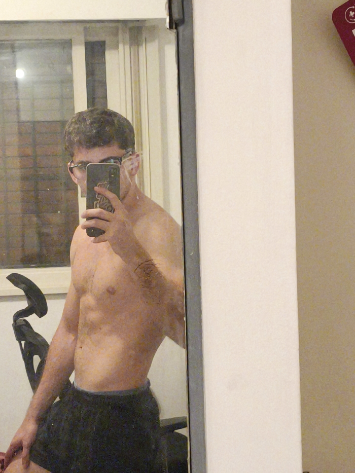 - "A shirtless man with glasses takes a selfie in a mirror" by FM-Ro4Ul2, licensed under CC BY 4.0