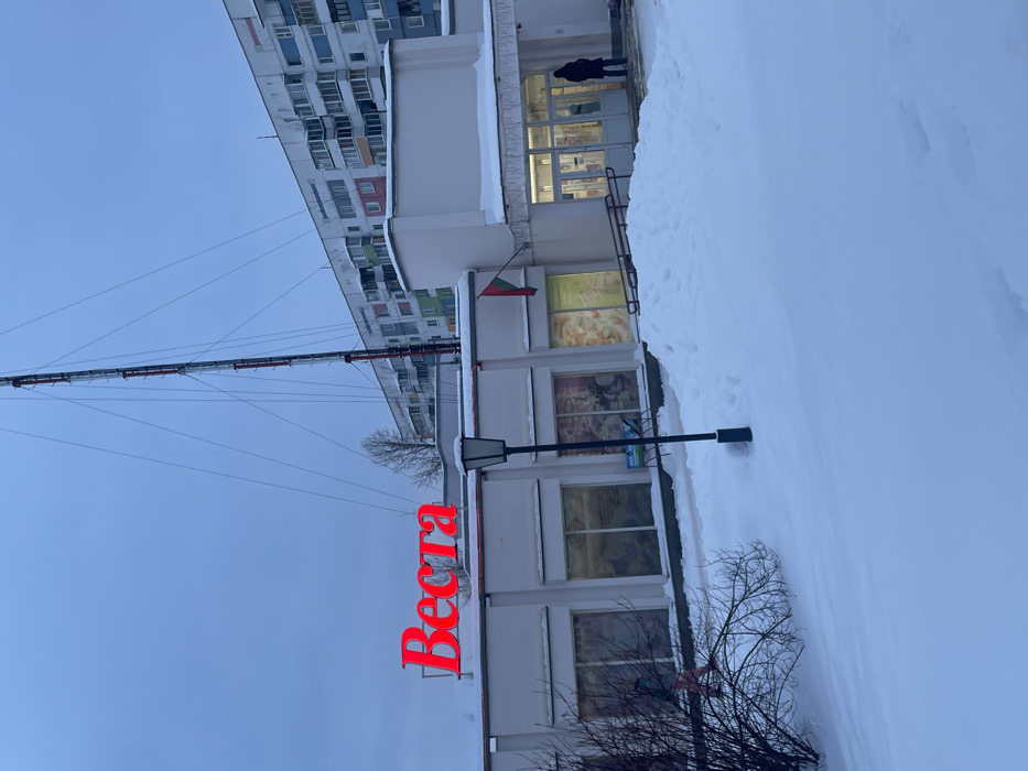 - "A winter scene in Vitsebsk, Belarus, depicts a single-story commercial building, identified by the illuminated red Cyrillic sign "Веста" (Vesta) mounted on its roofline" by FM-aSc183, licensed under CC BY 4.0