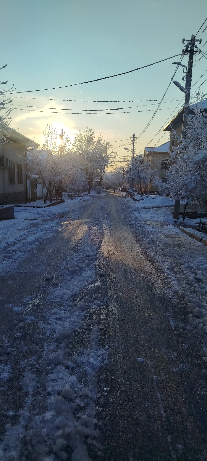 - "A snow-covered street scene during sunrise or sunset" by FM-1N7aK2, licensed under CC BY 4.0